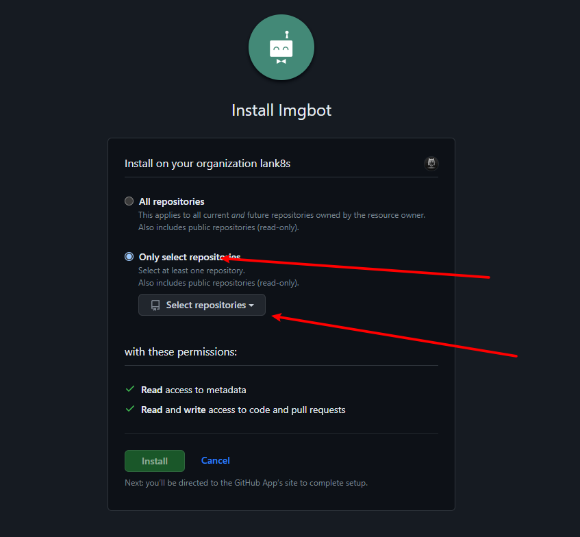 到这里为止你已经为你的博客仓库安装了 imgbot 这款 github apps,后续只要你仓库有可以优化的图片,那么 imgbot 就会自动的提交优化图片的 PR,你只需要决定是否需要合并就可以了.