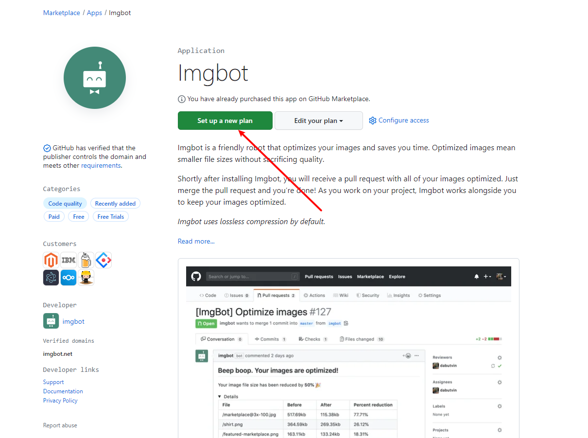 首先打开 在 github marketplace 中找到 imgbot,传送门