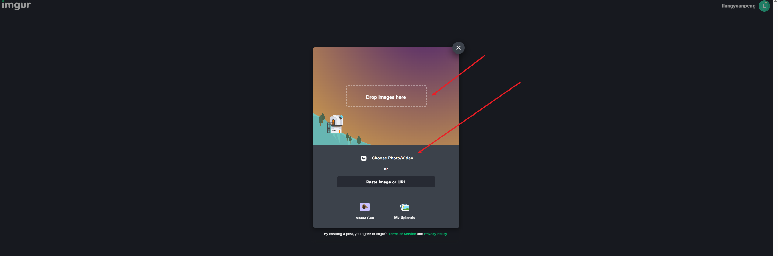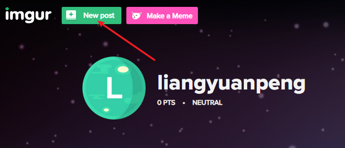 打开 imgur.com 并且完成注册,然后点击左上角的 New Post准备上传图片