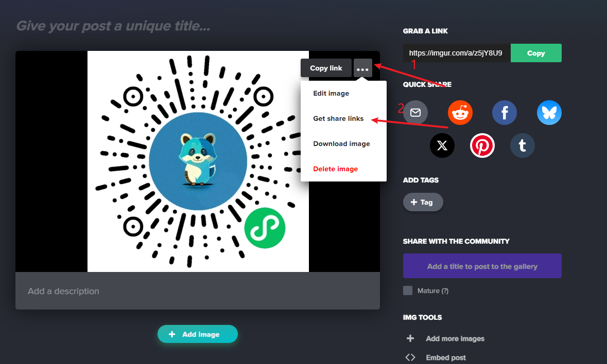 上传成功后可以点开图片的设置,点击获取分享的链接列表